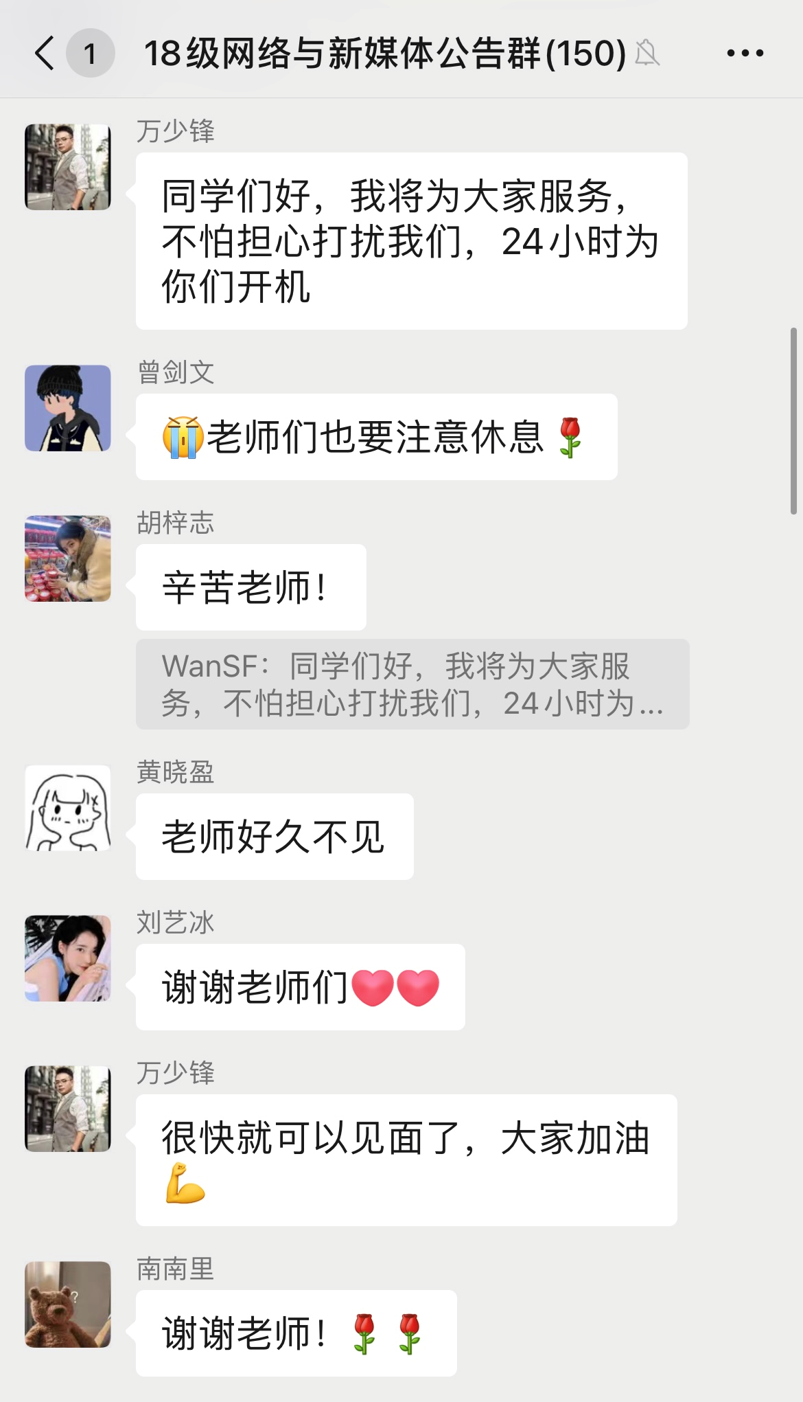 党员老师万少锋表示愿意为同学们24小时开机联系