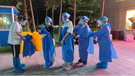 身穿防护服的教师志愿者