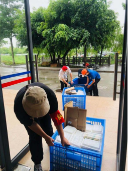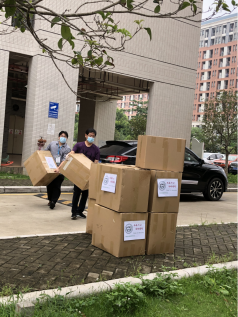 通过校友会外国语学院分会采购的物资连夜抵达我校东莞校区。面对搬运的压力,老师们积极加入,清点物资数量、搬运物资到指定地点、分发物资给师生,每一项都井井有条地进行着。用最快的速度将师生所需物资分发到每个人手中,用行动向大家展示了“外院速度”。