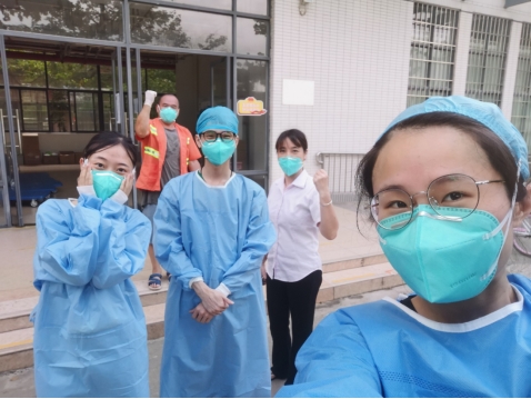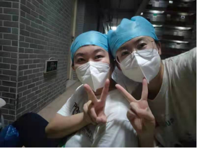 黄晓辉老师的先生是医生,如今也在广州芳村一线支援。在家封闭管理的20多天,家里只有她和女儿。当芳村解封先生回家后,她就决定回来支援了。她的这个决定,先生和女儿都非常支持。