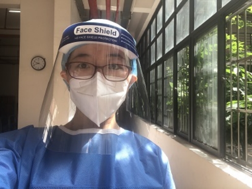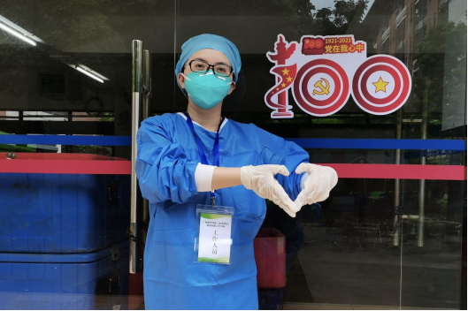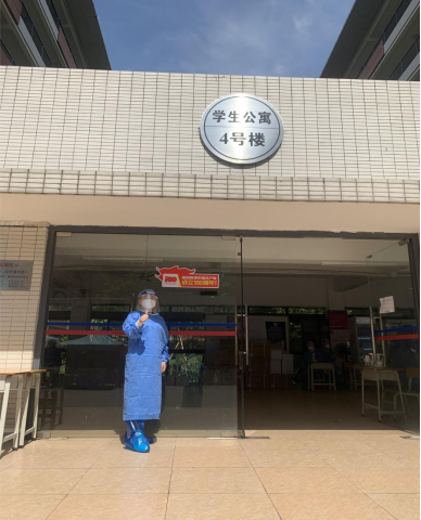 令倩倩老师家住广州芳村,6月19-24日,她在手机里看到系里的杨帮琰、吴桂玲等行政和辅导员老师每天凌晨1、2点,仍在学生群里统计、发布各种信息,当时就已经决定在芳村解封后到东莞校区支援一线,与大家并肩作战。令老师的女儿平时很黏自己,但她从荔湾区线上教学的视频里,看到她的老师都在荔湾区疫情期间做社区防疫志愿者,令她觉得:我妈妈也是老师,也是要去做这些事的!令老师感觉很欣慰,自己的女儿懂事了,能为妈妈加油打气。令老师认为,选择当抗疫志愿者本身就是“责无旁贷”的,身体力行是教师的准则,自己也应行动起来,用行为回报祖国和社会的防疫保护。