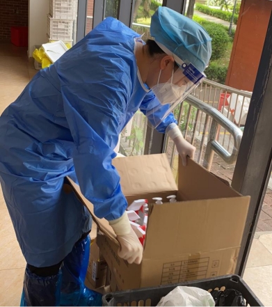 疫情来临,每个人的生活都被打乱了,没有人能够置身事外。我系齐留柱老师看到系里的志愿者招募信息,毅然加入了庞大的抗疫队伍中。他感触最深的是在疫情初期,相比物资,紧缺的是人手。搬运志愿者的工作压力很大,要一个场地接着一个称帝场地,一轮接着一轮地不停搬运。高温天气下搬运物资很是辛苦。和其他搬运物资的志愿者一样,齐老师二话不说就把物资扛起来,汗水湿透也毫无怨言。齐留柱老师认为,能把物资送到同学们和老师们的手中,解大家之所急,做这个工作的时候就会有一种强烈的意义感和获得感,正是这种意义感和获得感,支撑着他坚守在搬运岗位。他说:“新华学院的老师们,不但文能上课,武还能扛大包、‘送快递’,一专多能。”
