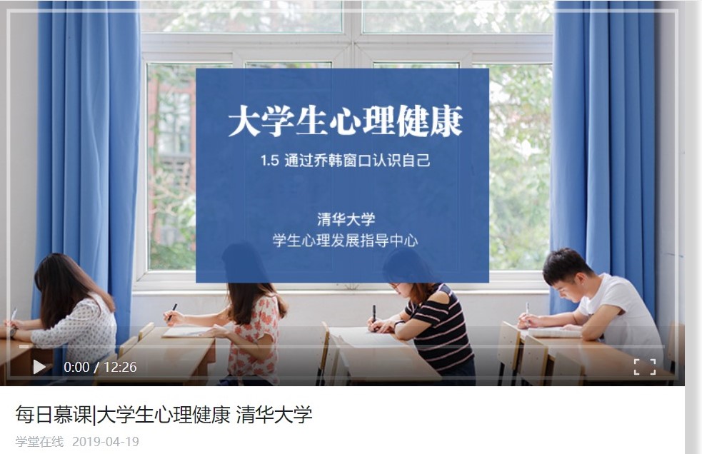 每日慕课|大学生心理健康:https://article.xuexi.cn/articles/index.html?art_id=9550282153284978294&study_style_id=video_default&t=1556437505654&showmenu=false&ref_read_id=7ed8e900-9ab3-4233-862a-d7183e4a9453_1624797614863&pid=&ptype=-1&source=share&share_to=wx_single