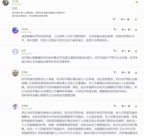 为激发学生学习的自觉性和主动性,国际经济与贸易专业的老师们充分利用腾讯会议连麦,学习通课堂中的抢答,话题等功能辅助课堂教学,同时利用线上便利的优势,进行问卷调查及时了解学生学习动态,不断调整教学方式,提升学习效率。吴喜龄老师和王艾嘉老师的《经济学原理》课堂中,学生互动频繁,效果良好。