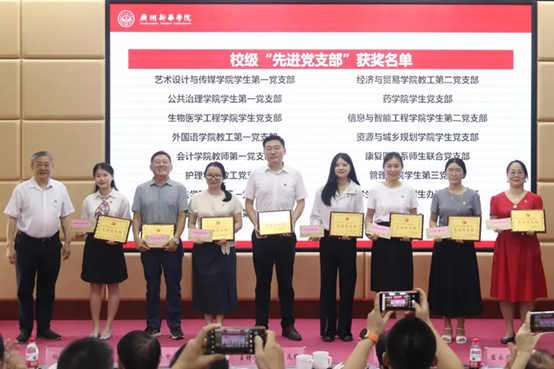 会计学院党总支杨广莉同志,护理学院党总支书记、执行院长王秀岚同志分别作为获奖个人和单位代表发言。她们紧紧围绕如何以实际行动发挥发挥党员示范带头作用,如何聚力党建与业务融合,把党建工作和业务工作同步谋划、同步部署、同步实施以及如何切实发挥党组织的战斗堡垒作用等主题分享了先进工作经验。她们表示,所取得的荣誉离不开学校党委的有力领导和各部门同志们的大力支持,在今后的工作中将继续团结身边同事,携手共进,为党的教育事业、国家的繁荣发展和广州新华高质量发展贡献智慧和力量。